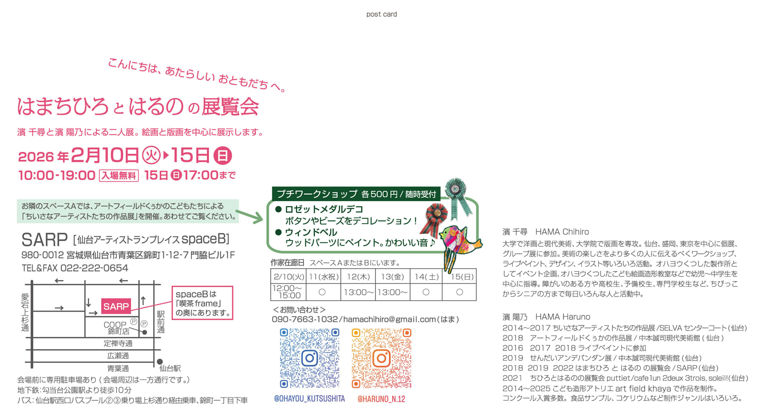 2026.2.10〜2.15 はまちひろとはるのの展覧会 こんにちは、あたらしいおともだちへ